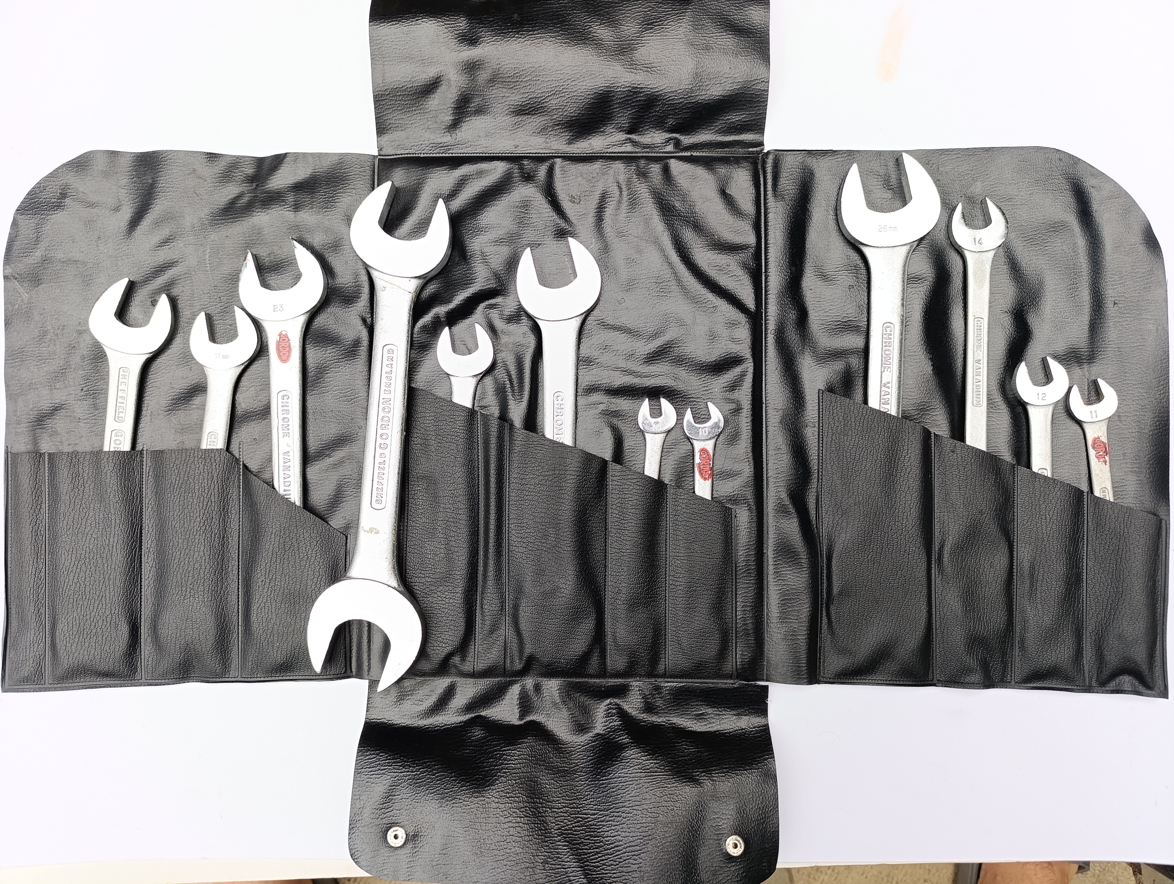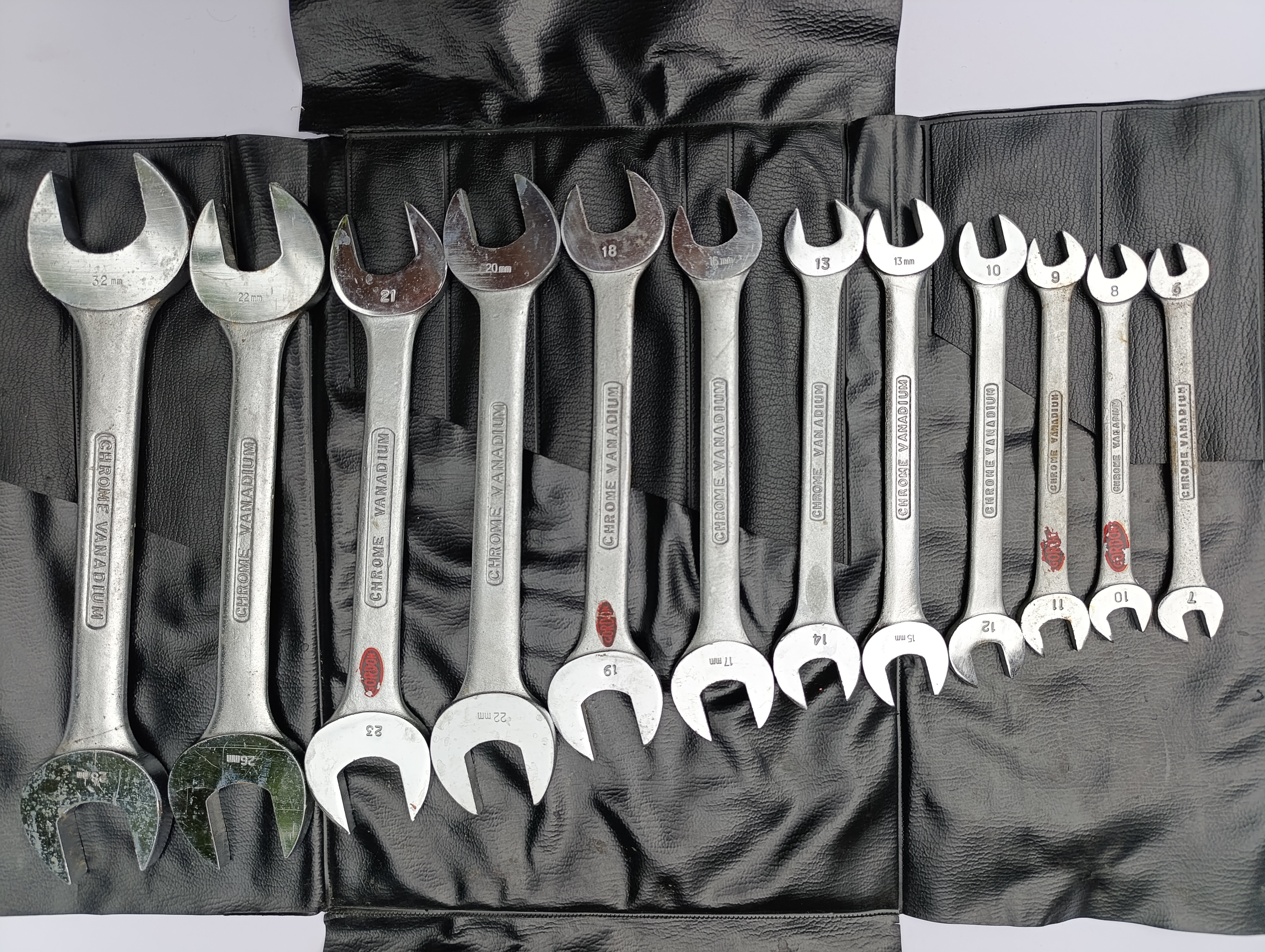 سایز های :6-7 و 8-10 و 9-11 و 10-12 و 13-14 و 13-15 و 16-17 و 18-19و20-22 و 21-23 و 22-26 و 28-32.بعلت قدمت زیاد امکان دارد بعضی از آچار ها کمی خش داشته باشند.